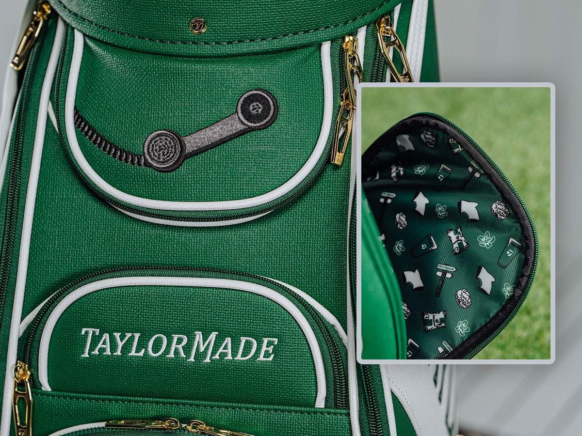 Dòng chữ TaylorMade màu xanh trên nền trắng được đặt nổi bật, gợi nhắc đến kiểu chữ mang tính biểu tượng gắn liền với giải đấu danh giá này. Họa tiết thêu hoa azalea xuất hiện trên hai mặt bên của túi, tôn vinh loài hoa chính thức của giải đấu và sân đấu đăng cai. Những đường viền trắng cùng chi tiết chỉ may tạo nên sự tương phản hoàn hảo, tái hiện vẻ đẹp đối lập đầy cuốn hút trên vùng đất huyền thoại ấy.