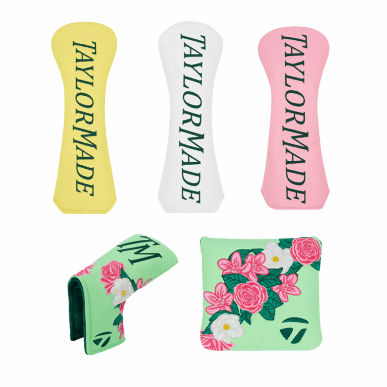 Các mẫu headcover dành cho gậy wood mang thiết kế tối giản nhưng thanh lịch, với nền màu hồng, vàng và trắng, nổi bật cùng dòng chữ TaylorMade màu xanh đặc trưng. Trong khi đó, headcover dành cho putter được phủ đầy họa tiết hoa hồng và trắng trên nền xanh lá nhạt, tạo cảm giác tươi mới và giàu sức sống.