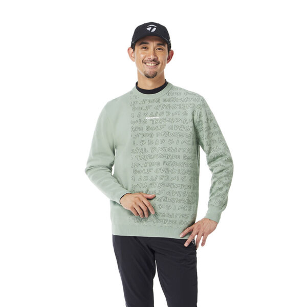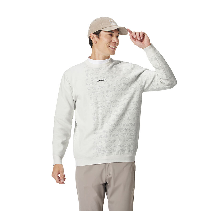 Đây là mẫu áo sweater cổ tròn (crewneck) nổi bật với họa tiết đồ họa độc đáo, phác họa các chữ cái “TaylorMade” theo phong cách viết tay đầy nghệ thuật.