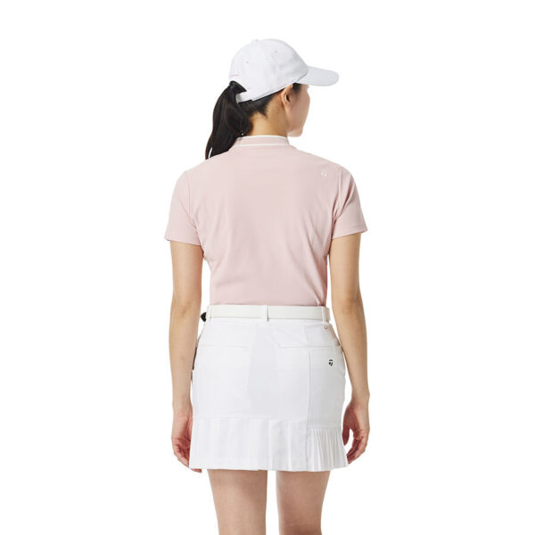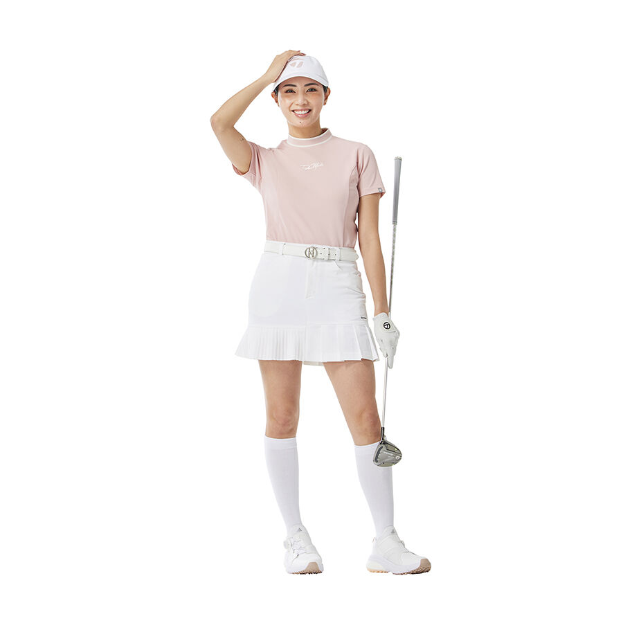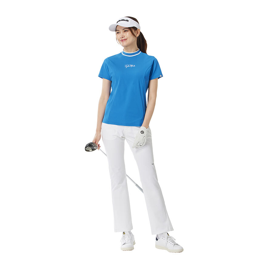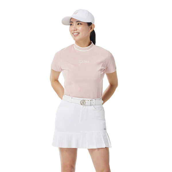 Áo golf nữ tay ngắn cổ mock với logo chữ viết tay (script logo) tinh tế ở ngực, mang lại vẻ ngoài trẻ trung và nữ tính. Thiết kế cổ mock nhẹ nhàng có đường viền mảnh, kết hợp phần xẻ tà tinh tế ở gấu áo, giúp chiếc áo vừa thoải mái khi vận động vừa tạo điểm nhấn thời trang nổi bật.