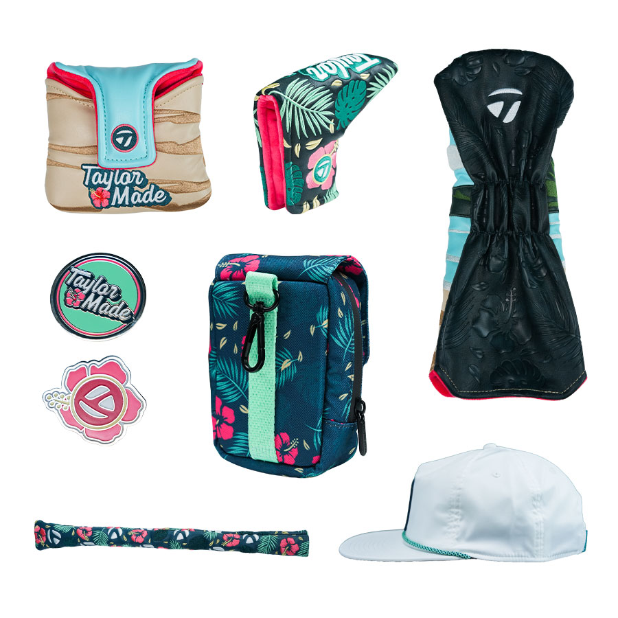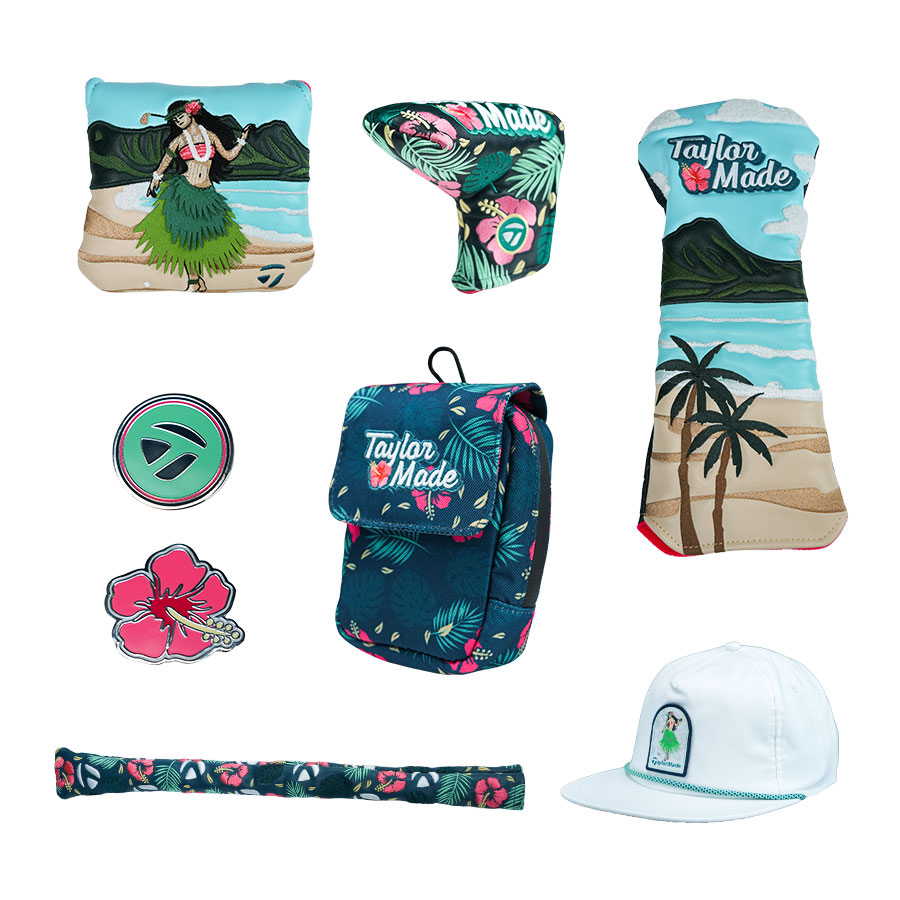 Với thiết kế sống động gồm các họa tiết đặc trưng như vũ công Hula, hoa dâm bụt và cảnh biển Hawaii, bộ sưu tập bao gồm bọc đầu gậy, nón, túi và nhiều phụ kiện khác. Mỗi chi tiết đều được chế tác tinh xảo, thể hiện đẳng cấp và cá tính của người chơi.