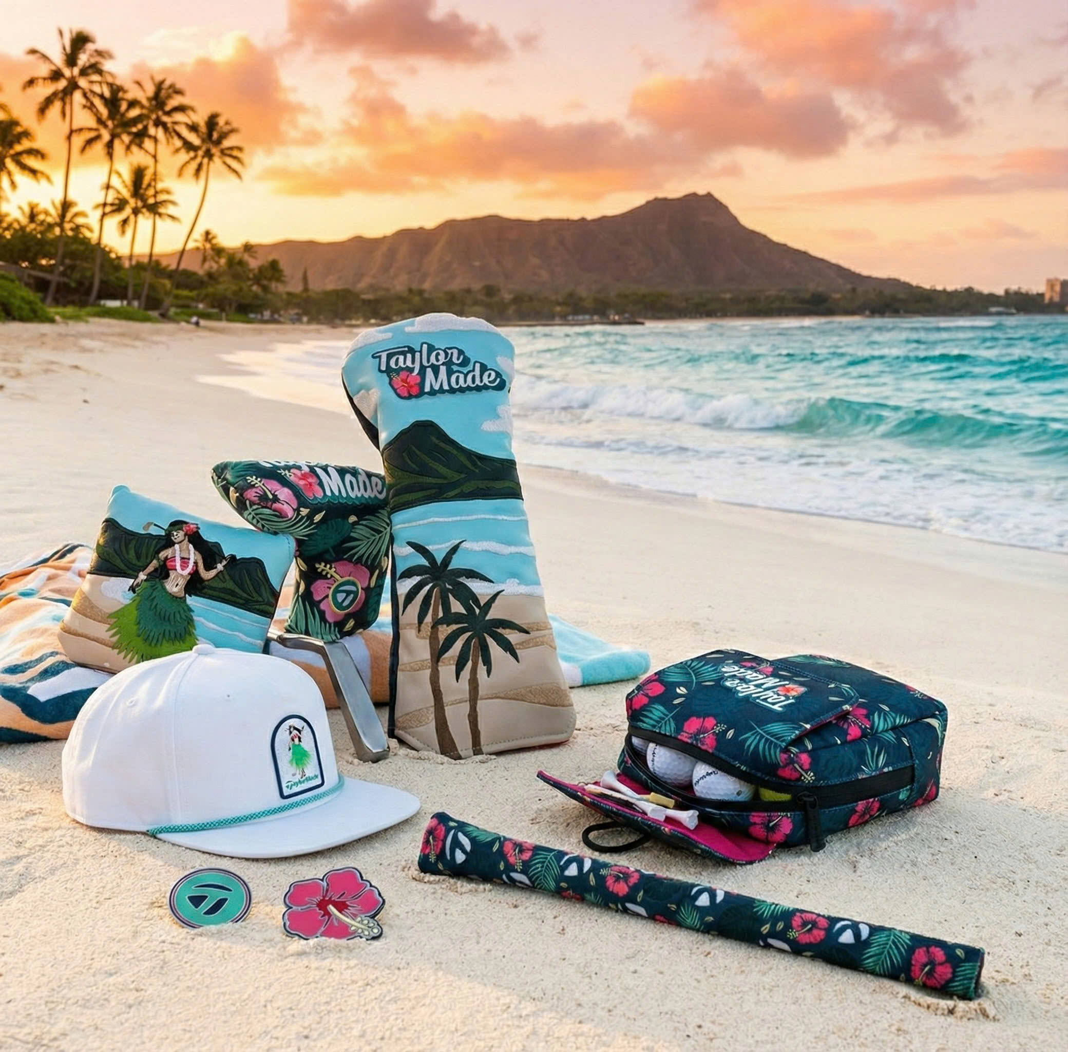 Với thiết kế sống động gồm các họa tiết đặc trưng như vũ công Hula, hoa dâm bụt và cảnh biển Hawaii, bộ sưu tập bao gồm bọc đầu gậy, nón, túi và nhiều phụ kiện khác. Mỗi chi tiết đều được chế tác tinh xảo, thể hiện đẳng cấp và cá tính của người chơi.