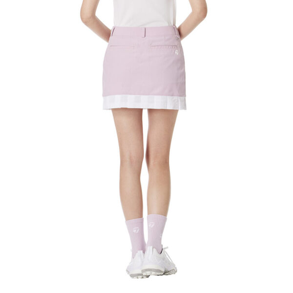 Chân váy golf nữ TaylorMade được thiết kế theo phong cách thể thao hiện đại, nổi bật với công nghệ T-SHADE giúp hạn chế hấp thụ nhiệt từ ánh nắng, mang lại cảm giác dễ chịu khi vận động ngoài trời. Phần gấu váy xếp ly kết hợp chất liệu mesh tạo hiệu ứng thoáng mát và nhẹ nhàng, phù hợp cho những vòng golf mùa hè.