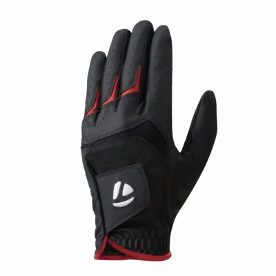 D. Da tổng hợp có độ bền gấp đôi so với các phần khác của lòng bàn tay được sử dụng trên miếng đệm tay nơi áp lực được áp dụng. Logo TaylorMade được ép trên miếng đệm tay.
