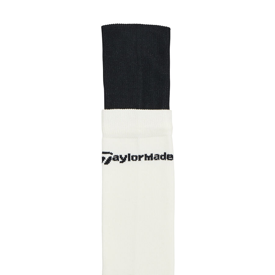 Tất cao quá gối (over-knee) với thiết kế chuyển mảng tạo hiệu ứng xếp lớp (layered), tuy đơn giản nhưng vẫn đủ nổi bật để trở thành điểm nhấn cho set trang phục.