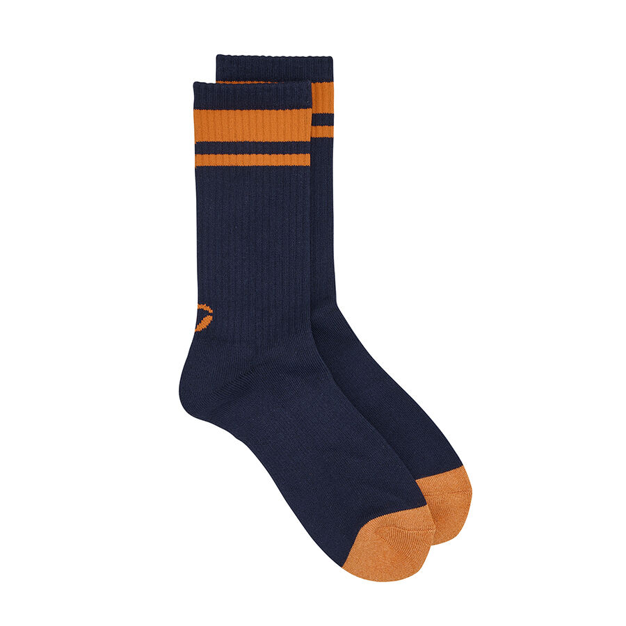 Tất cổ trung với thiết kế sọc có độ dày khác nhau, tạo điểm nhấn nổi bật và dễ phối đồ trong nhiều phong cách trang phục.