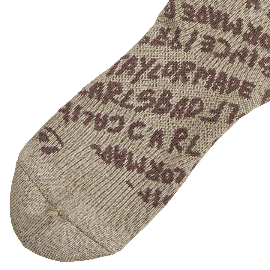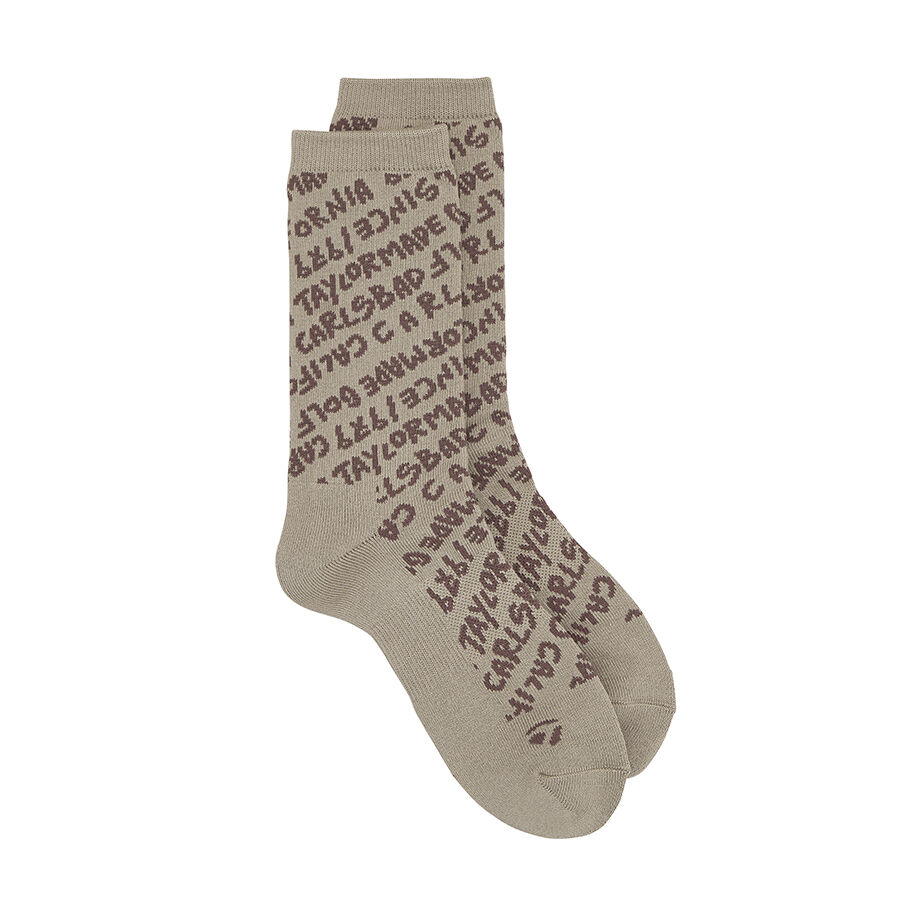 Tất cổ trung nổi bật với họa tiết chữ (word graphic) được bố trí khắp bề mặt, tạo phong cách trẻ trung và cá tính.